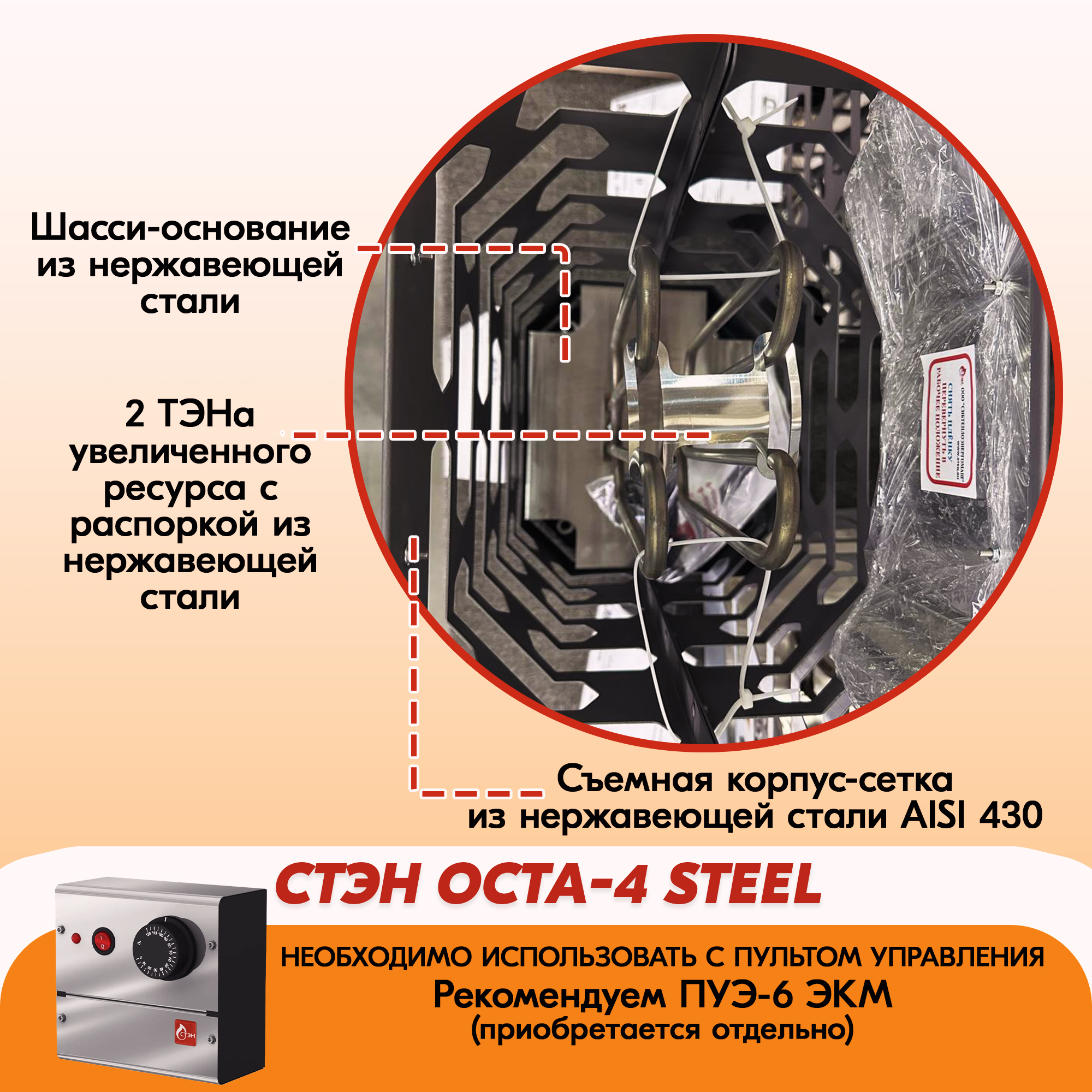 Электрическая каменка СТЭН ЭКМ 4 Octa steel в Челябинске | Доставка по России