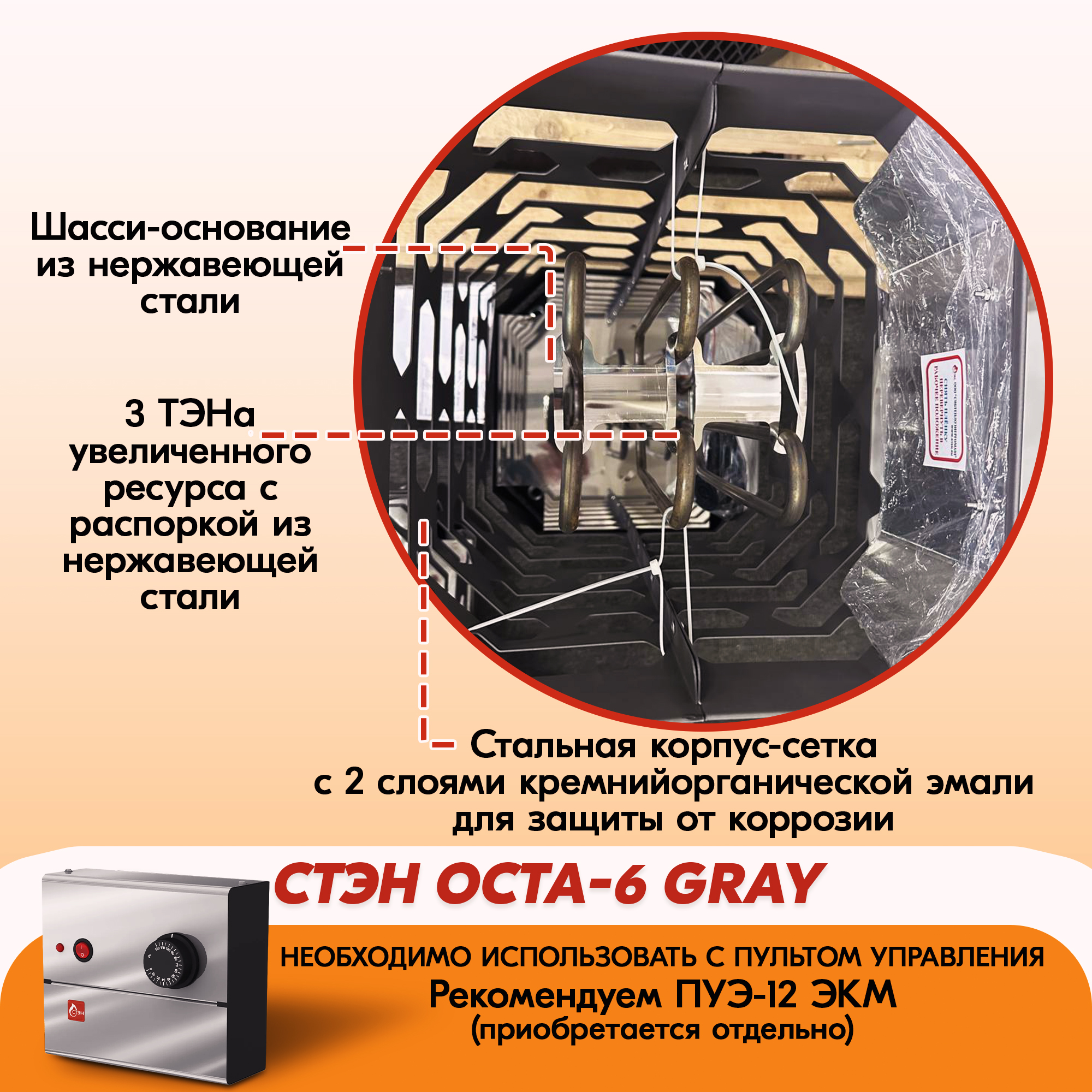 Электрическая каменка СТЭН ЭКМ 6 Octa gray в Челябинске | Доставка по России