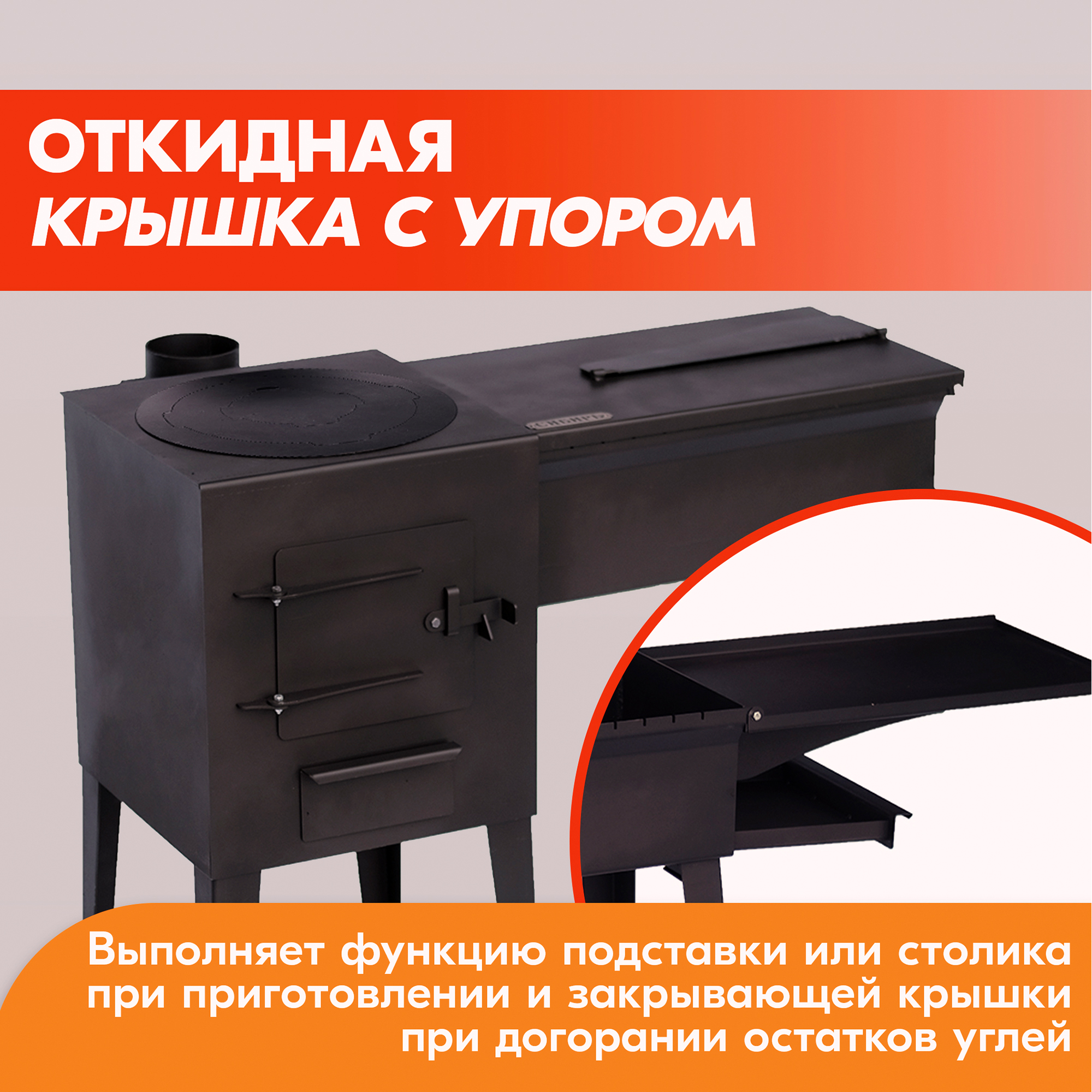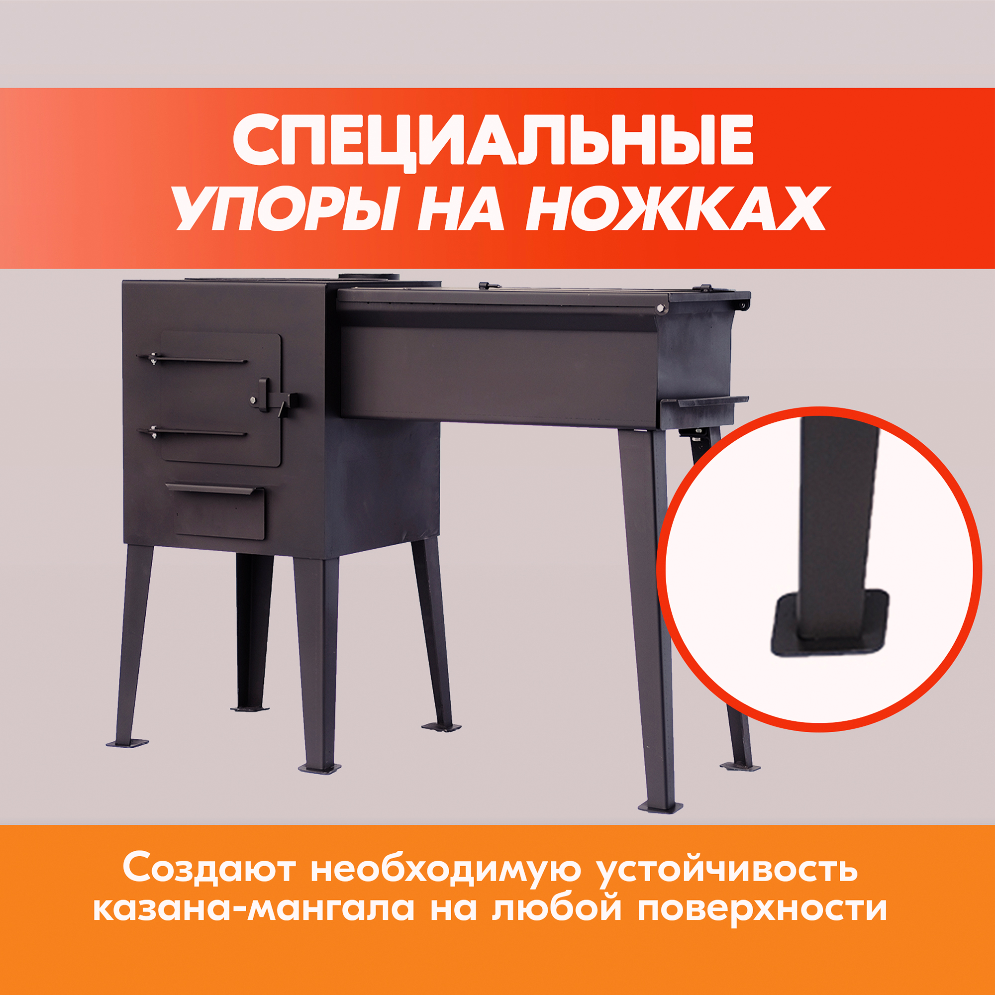 Также вы можете дооснастить казан-мангал универсальной коптильней, что расширит диапазон приготавливаемых блюд.