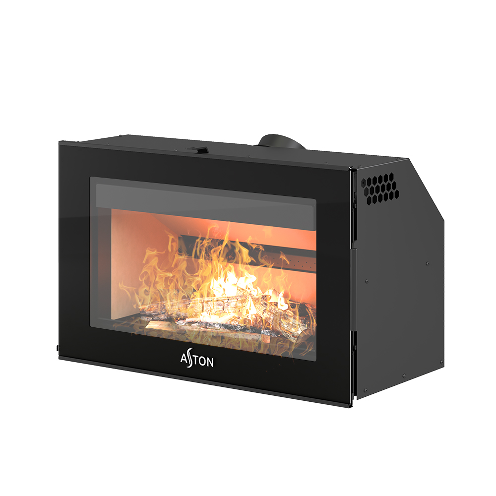 Стальная каминная топка АСТОН, рассчитанная на подовое горение дров.