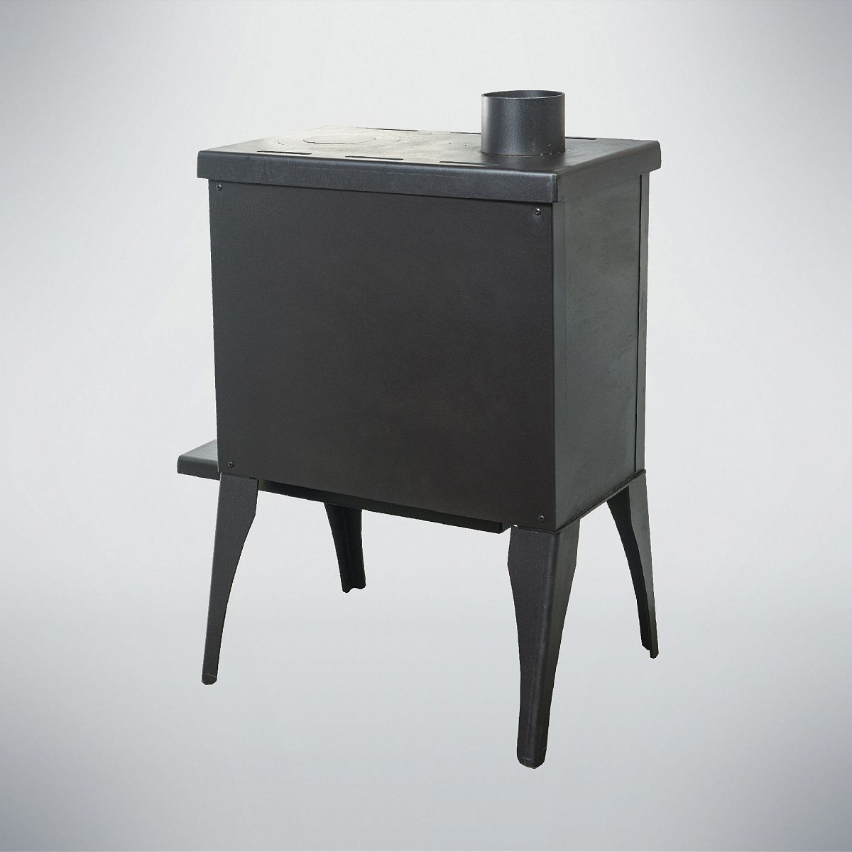 Печь-Камин Гармония Афина Гранда имеет сменный отбойник пламени внутри топки, который не позволяет дымовым газам выходить сразу в дымоход. На верхней панели печи имеется варочная панель, для приготовления пищи.