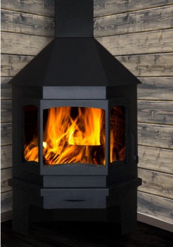 Печь-камин Мюнхен производится из стали с финишной покраской в черный цвет либо цвет графит.