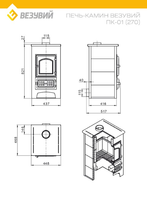 Надежная и долговечная печь, изготовленная из жаростойкой стали и чугуна.