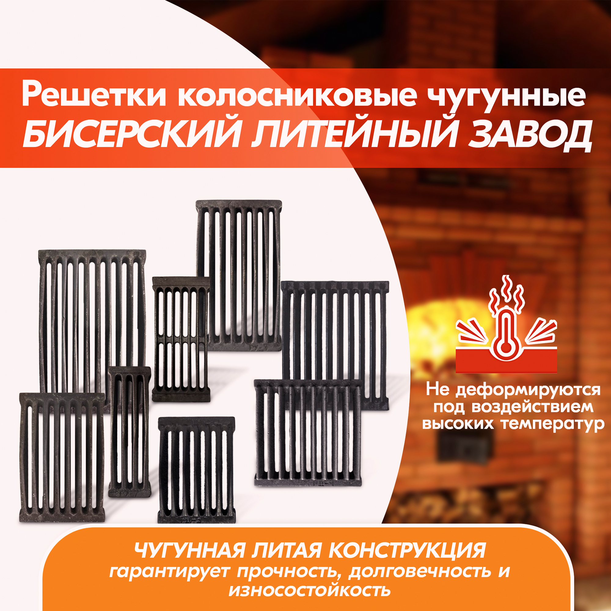 Решетки колосниковые для печи Бисерского Литейного завода производятся из серого чугуна, который отличается прочностью и долговечностью.