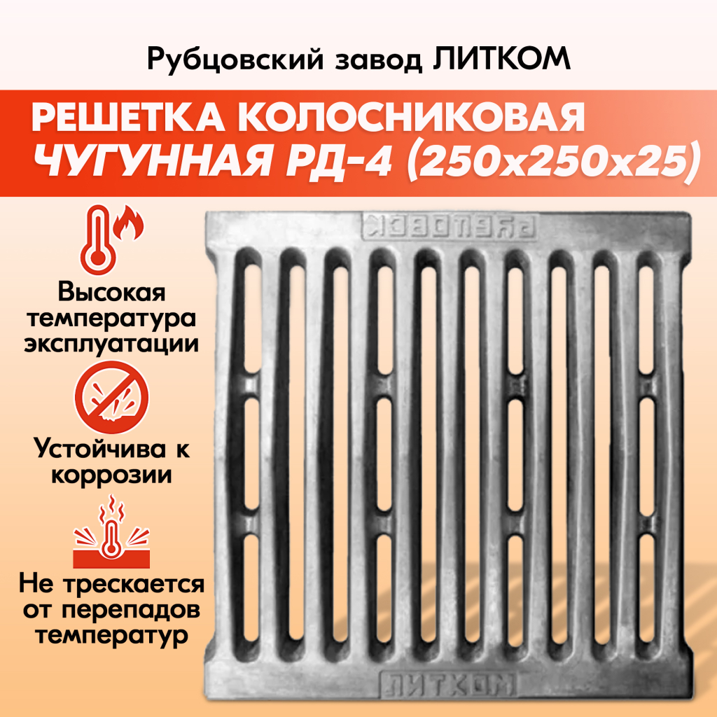 Решетки колосниковые для печи Рубцовского завода ЛИТКОМ производятся из чугуна, который отличается прочностью и долговечностью.