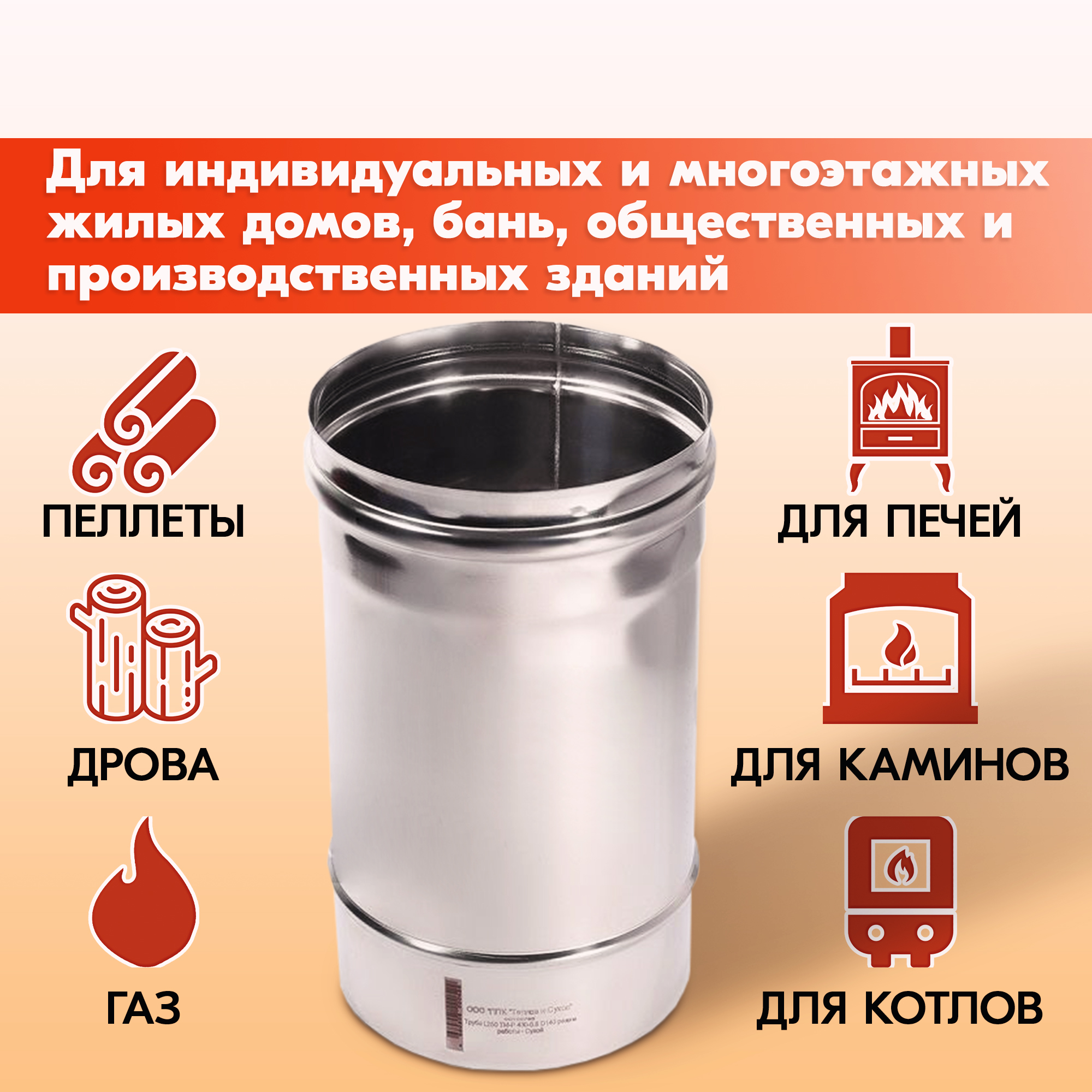 Дымоходная труба Моно от производственной компании Теплов и Сухов – является основным элементом дымоходной системы и предназначена для отведения продуктов сгорания от печей, каминов, котлов, устанавливаемых в индивидуальных и многоэтажных жилых домах, банях, общественных и производственных зданиях.