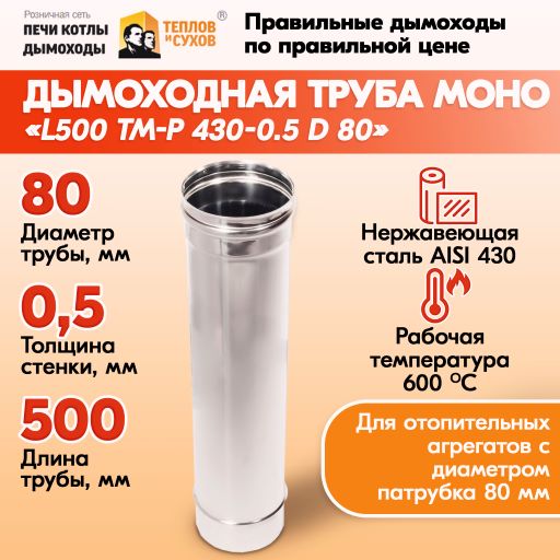 Труба дымовая из нержавейки моно L500 ТМ-Р 430-0.5 D 80 газовый дымоход для котлов