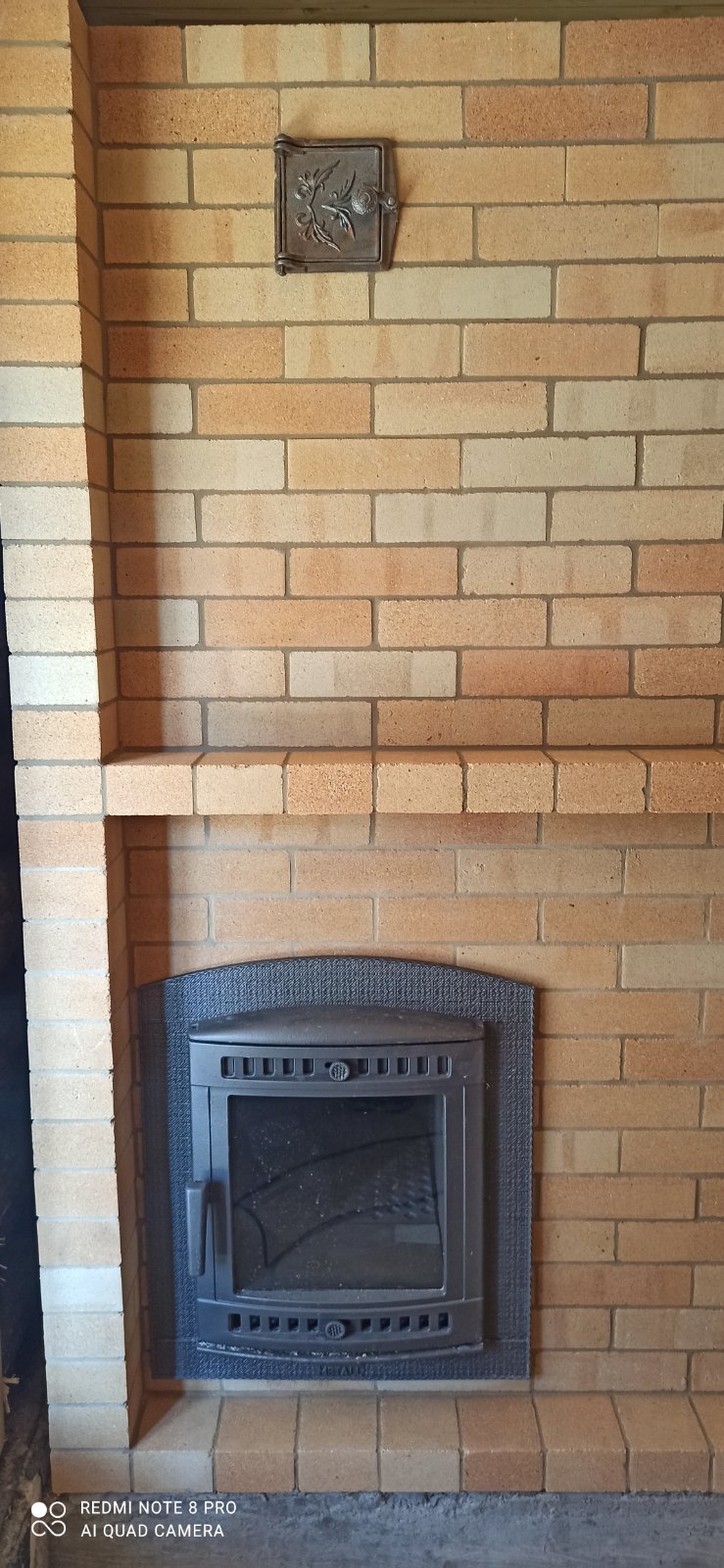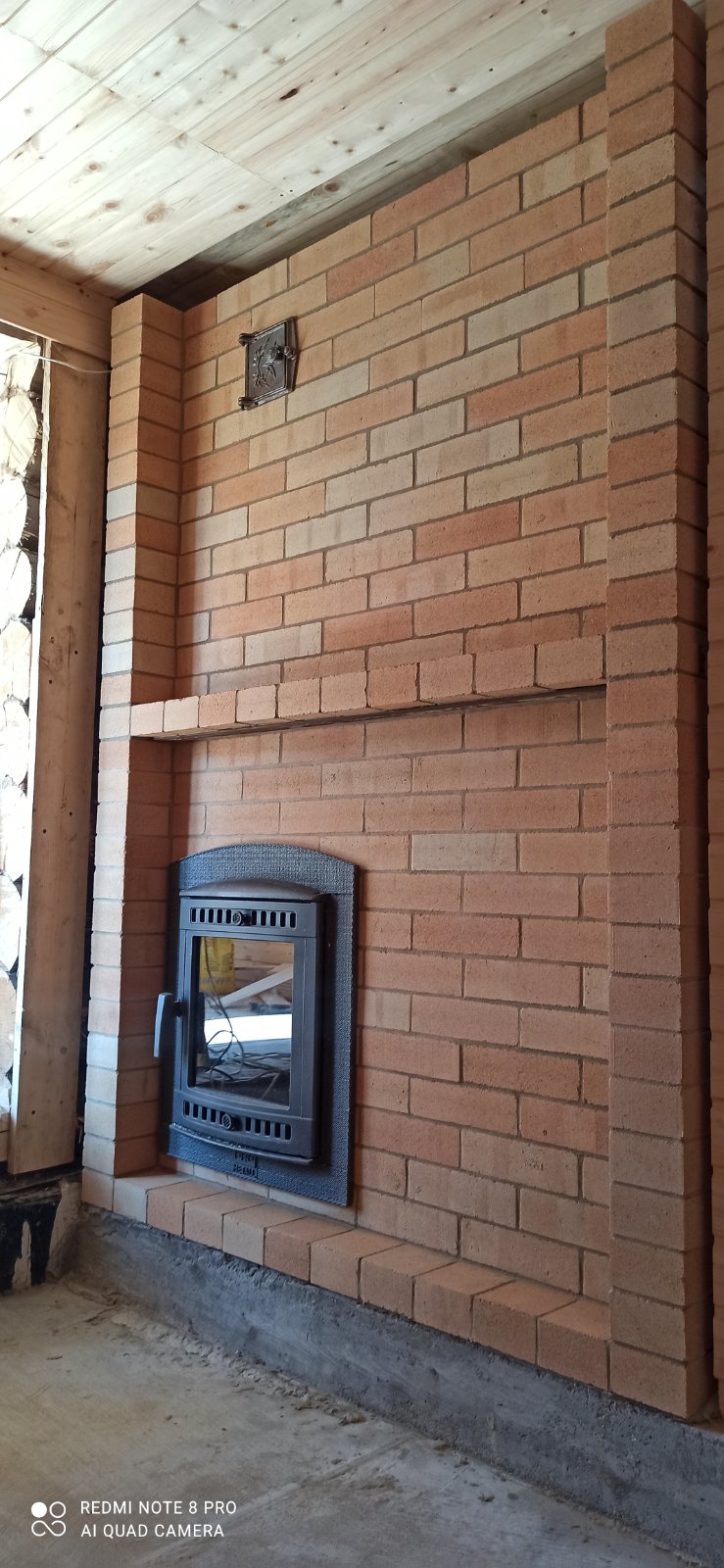 Монтаж печи Атмосфера, установка дымохода, кладка портала с конвекционными дверками.