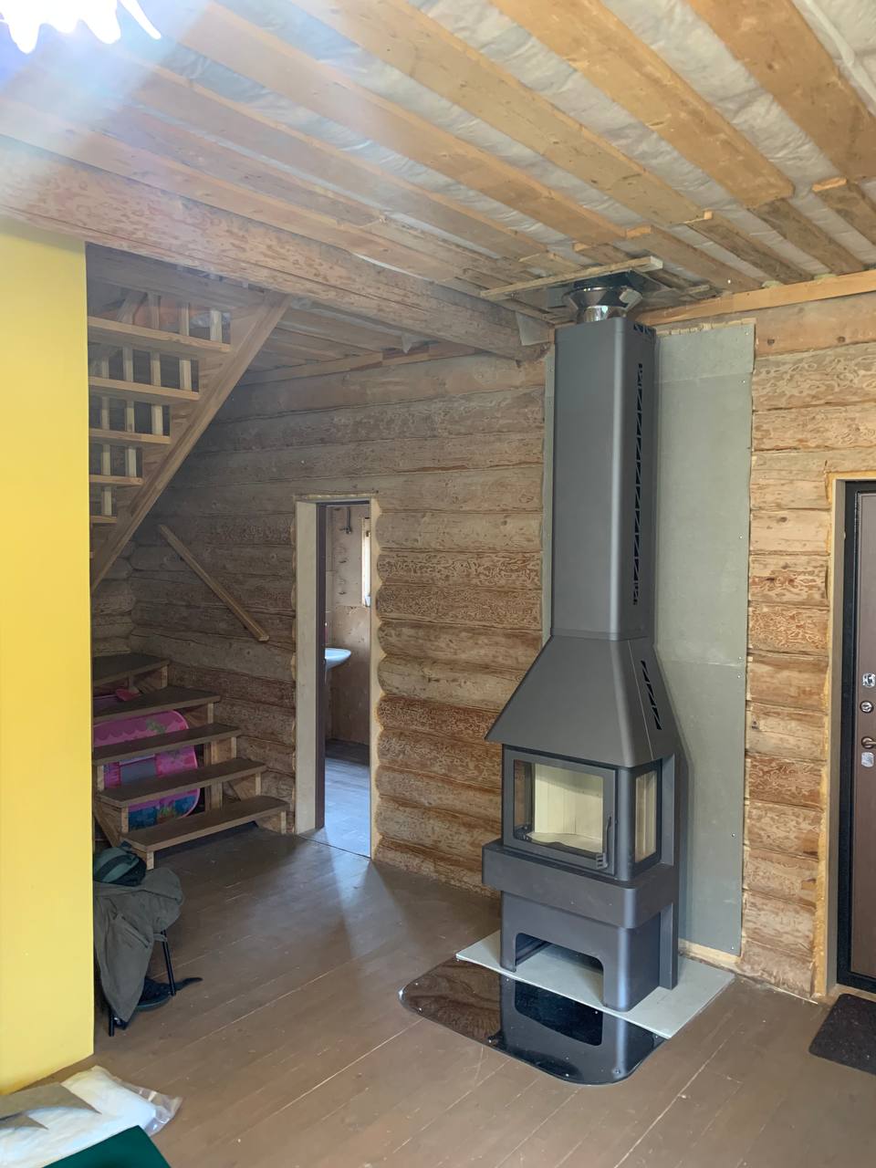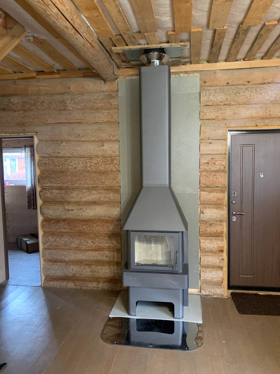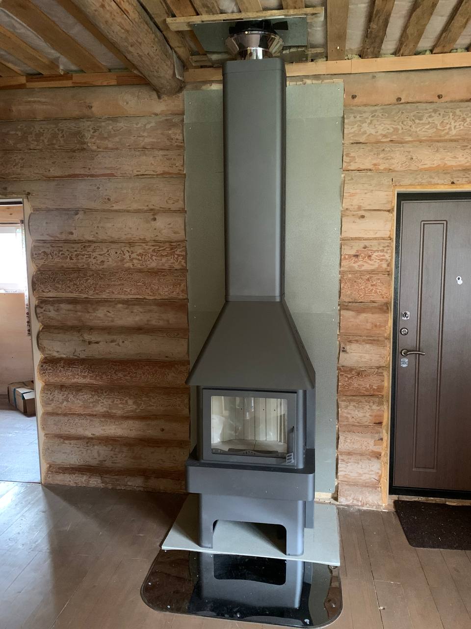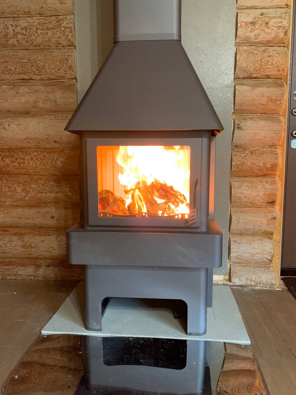 Печь-камин Бавария 3 стекла ,дымоход Теплов и Сухов ,Плита Фиброцементная
