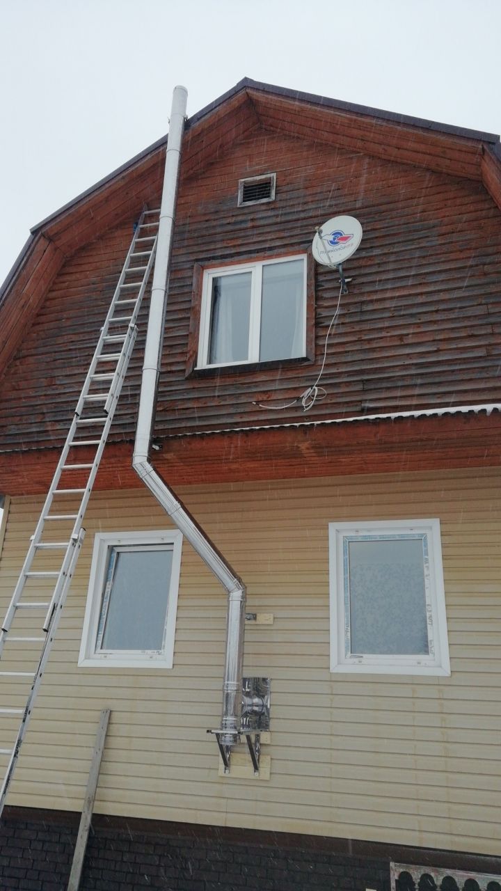 Установка печи-камина Бахта и монтаж дымохода ТиС с проходом через стену